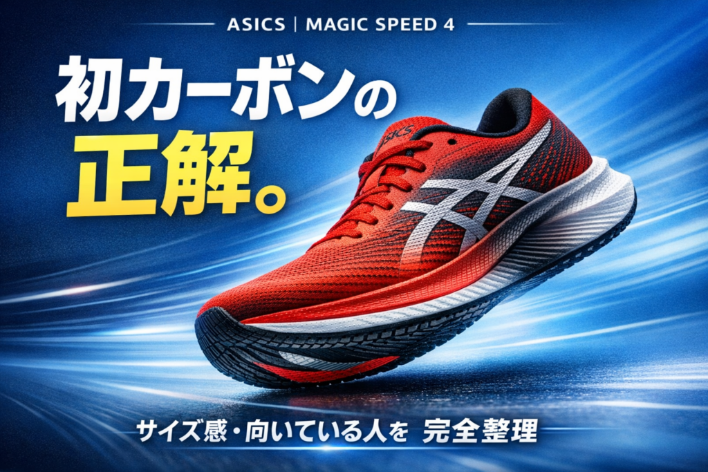 「マジックスピード4のサイズ感って、普段のASICSと同じでいい?」──結論から言うと、多くのランナーは同サイズで問題ありません。ただし足幅・甲の高さによって評価が分かれるシューズです。 この記事では、マジックスピード4の立ち位置・サイズ感の傾向... Sneakers